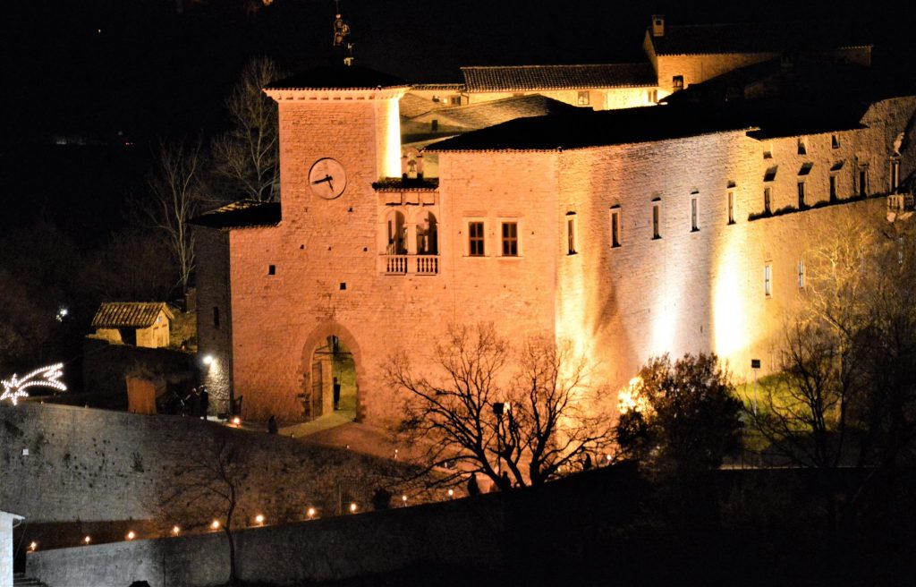 Nella notte invernale la realtà si perde e sfuma in un remoto passato, nel quale ci si immerge nelle scene di vita quotidiana di più di duemila anni fa, ricreate nelle cantine, negli androni, nelle piazzette e lungo le suggestive viuzze del borgo, rischiarate dalla fioca luce dei fuochi e delle torce. Le note musicali in sottofondo accompagneranno lo spettatore lungo il percorso vincolato: dall’ingresso del centro storico attraverso il borgo, fino al monumentale Castello Brancaleoni, in un fiabesco ambiente animato da oltre 100 figuranti che rappresentano i diversi personaggi.