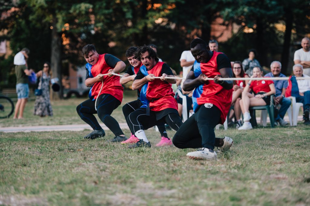 4) TIRO ALLA FUNE: si tratta di uno scontro di forza tra due rioni definiti dalla destrezza dei capi soldato. Ogni rione è composto da 4 vigorosi giocatori che dovranno, grazie alla loro prestanza fisica, riuscire a battere gli avversari facendo oltrepassare loro la linea di confine posta a metà tra i gareggianti.
