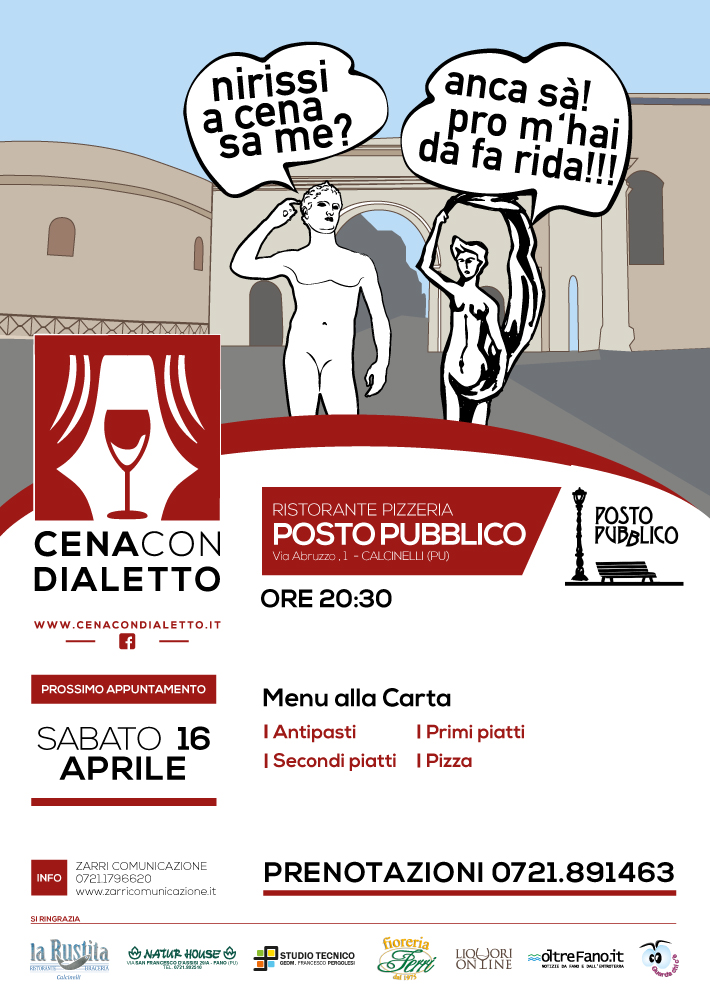 Maggiori informazioni sul sito www.cenacondialetto.it e sulla pagina Facebook Cena con dialetto. Per contattare gli organizzatori: 0721/1796620.