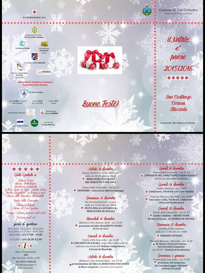 Come per le iniziative estive San Costanzo mantiene lo stesso stile organizzativo per gli eventi natalizi. L’Amministrazione Comunale si avvarrà della genialità e dell’operosità delle Associazioni locali nell’offrire iniziative cangianti per tutti i gusti.