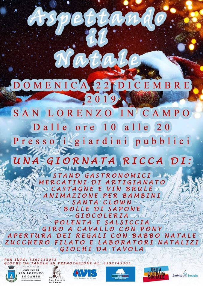 La Pro loco di San Lorenzo in Campo in collaborazione con l’Amministrazione comunale, l’Avis e l’Ambito sociale 6, organizzano domenica 22 dicembre, nella splendida cornice dei giardini pubblici, Aspettando il Natale.