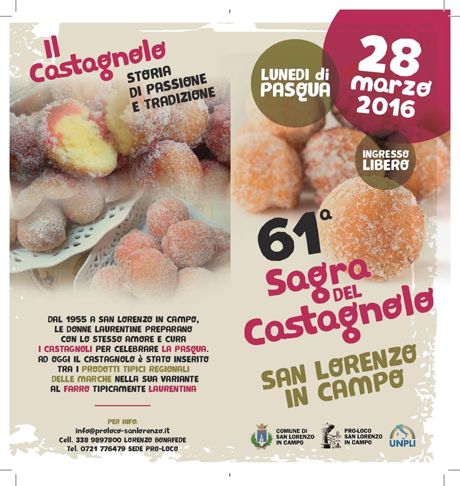 Dal lontano 1955 le donne di San Lorenzo in Campo preparano con lo stesso amore e cura i castagnoli per celebrare la Pasqua. Il castagnolo è stato inserito tra i prodotti tipici regionali delle Marche nella sua variante al farro tipicamente laurentina.