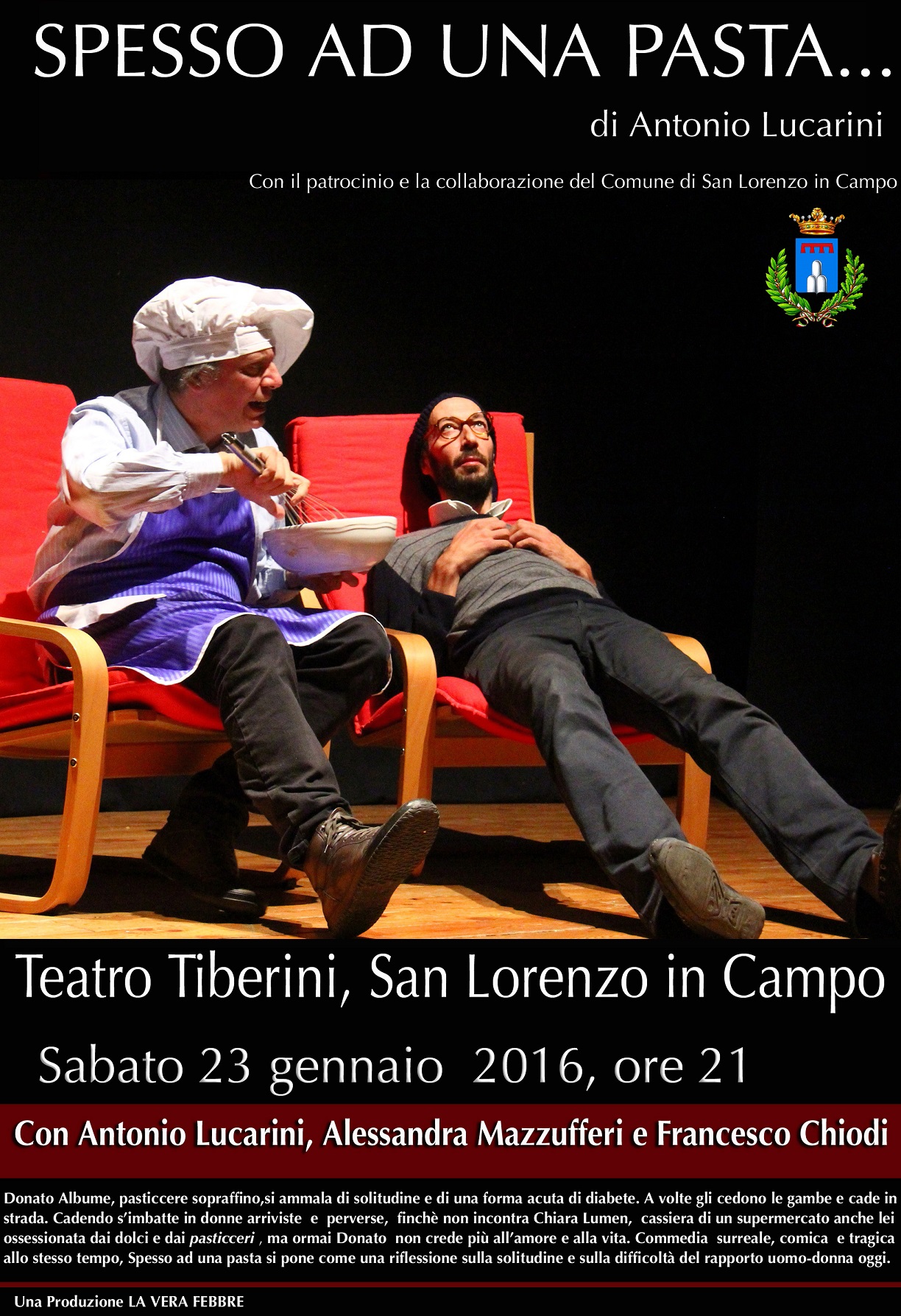 Sabato 23 gennaio (stasera) alle 21, lo spettacolo “Spesso ad una pasta…”. Una produzione della compagnia “La Vera Febbre”, con interpreti Antonio Lucarini, Alessandra Mazzufferi e Francesco Chiodi. E’ una riflessione comica ma malinconica allo stesso tempo, sul mondo economico che schiaccia gli individui, spingendoli solo al consumo e che ne svuota i sentimenti e i rapporti.