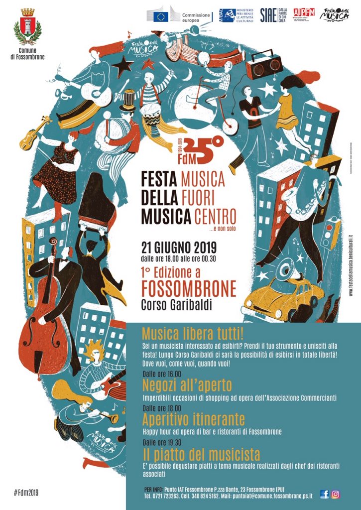 Venerdì 21 Giugno si terrà a Fossombrone la prima edizione della Festa della Musica, manifestazione che da 25 anni celebra la musica in tutta Europa.