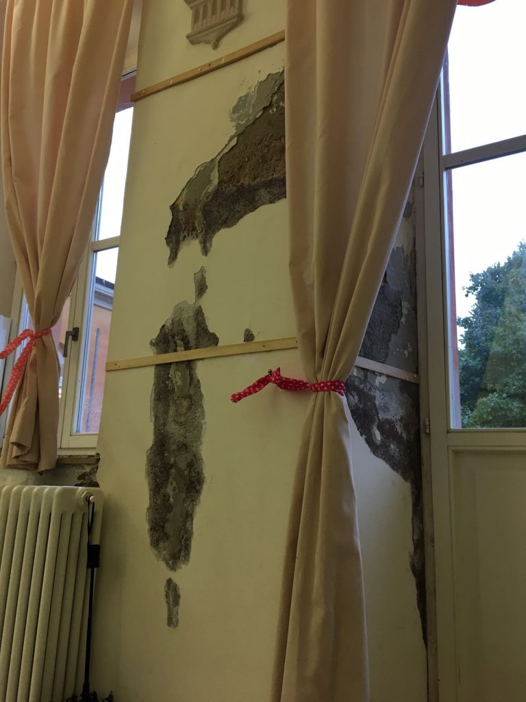 Asciugamani alle porte per evitare di essere inondati e vernice che si stacca dalle pareti, sono considerate dall’amministrazione un luogo sano e igienico dove far passare ai nostri figli gran parte della giornata?