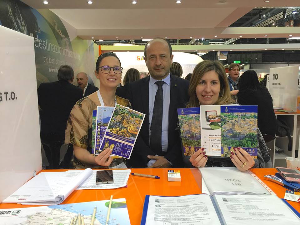 Dopo la pubblicazione dei Bronzi Dorati sulla copertina dell’elenco telefonico “SI” annunciata qualche settimana fa dal Sindaco Baldelli e dal Direttore di Confcommercio Varotti, l’Amministrazione pergolese e la Confcommercio di Pesaro e Urbino hanno dato il via al nuovo tour promozionale 2016 della Città di Pergola e dei suoi Bronzi Dorati. Si è partiti proprio dalla BIT di Milano, la Borsa Italiana del Turismo, che dall’11 al 13 febbraio ha raccolto attorno a sé gli operatori turistici di tutto il mondo. L’intenzione di Baldelli e Varotti è quella di ripetere ed anzi allargare il tour promozionale organizzato gli anni scorsi in America e nelle più importanti città d’Europa.