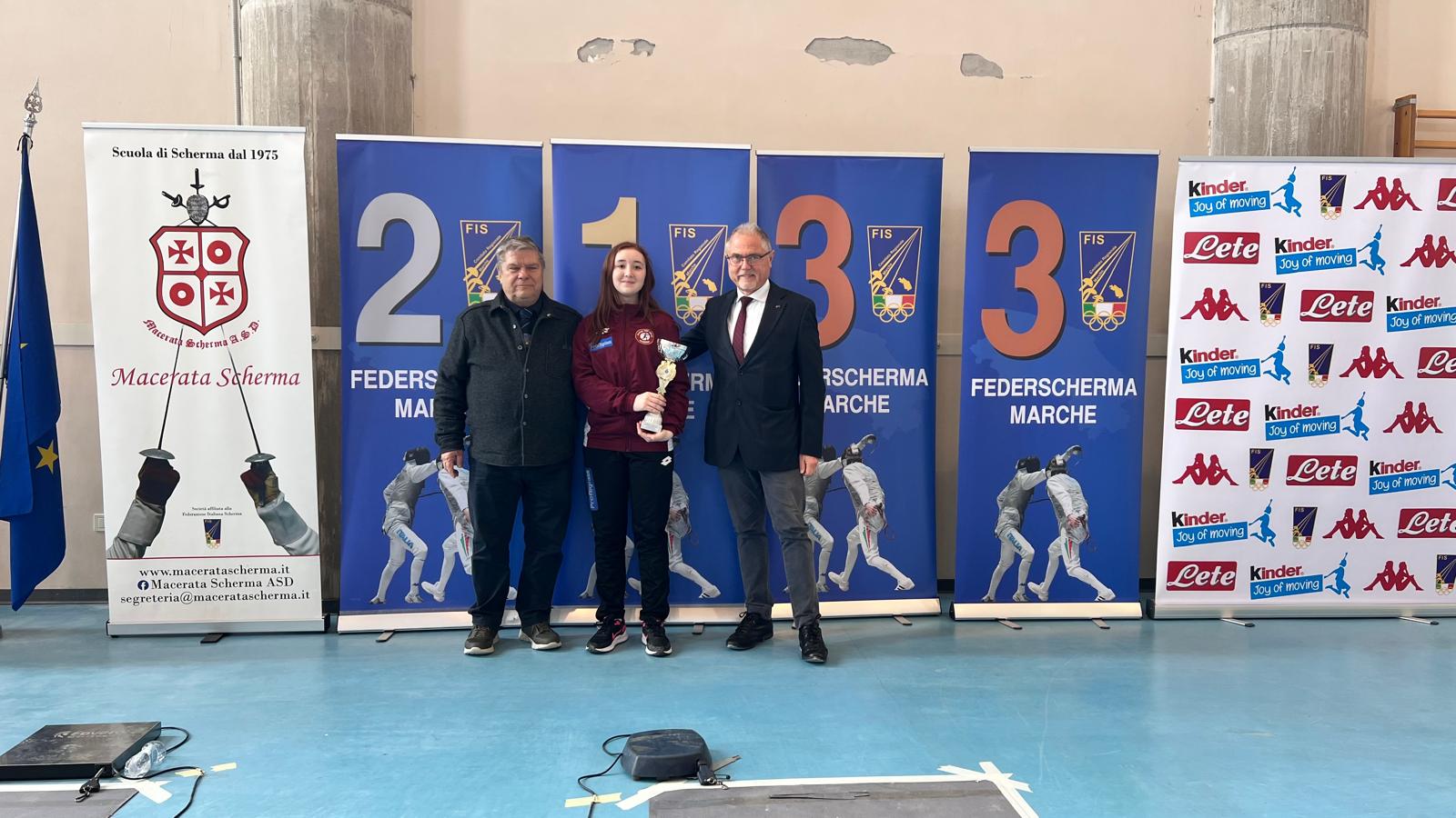 Vittoria di Melita Governatori del Club Scherma Jesi nel Fioretto Ragazze; 2° Emily Riciotti del Club Scherma Fabriano; 3° ex aequo Alessia Greganti del Club Scherma Jesi e Gaia Pantanetti Gonzalez dell’Accademia della Scherma Fermo.