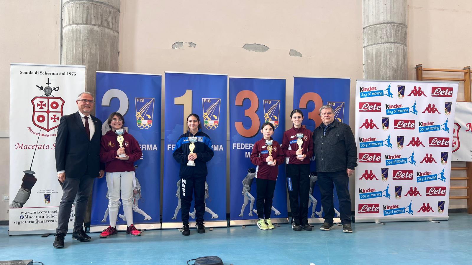 1° e 2° posto nel Fioretto bambine per Maria Elena Li Bergolis ed Emilia Caprari del Club Scherma Jesi; 3° ex aequo Alice Pieroni del Macerata Scherma ed Elisabetta Issini del Club Scherma Recanati.