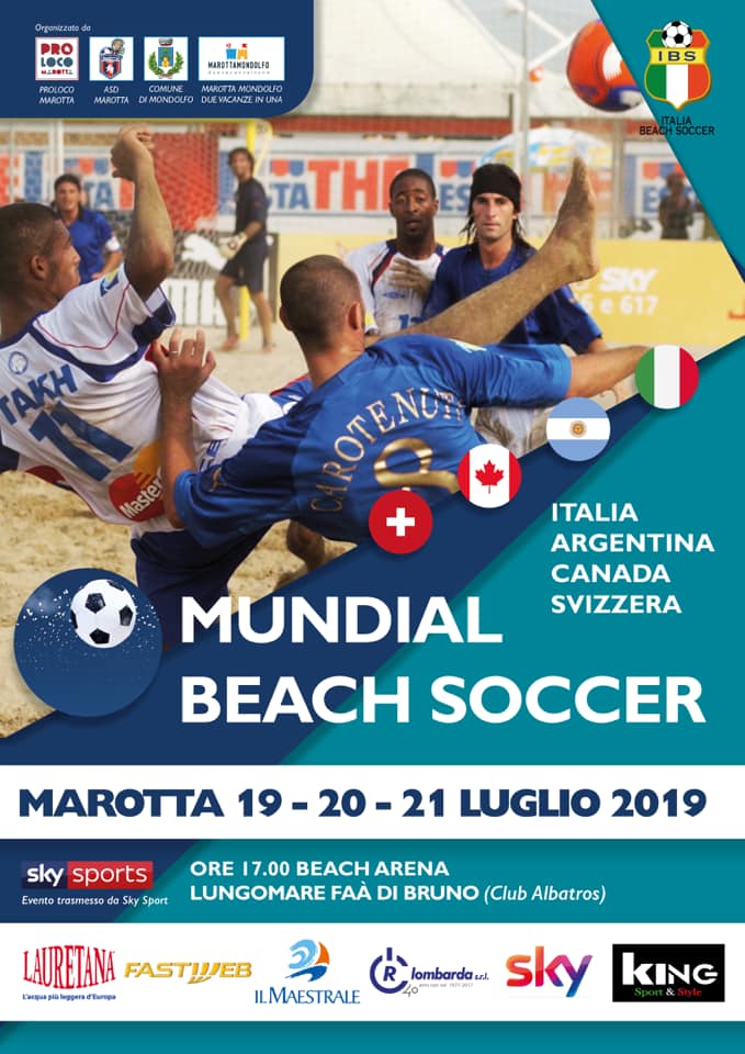 La spiaggia, Bandiera blu, di Marotta, in provincia di Pesaro Urbino, ospiterà dal 19 al 21 luglio una tappa del Mundial di Beach Soccer. E’ l’evento clou della estate marottese. La manifestazione promossa dalla Pro loco, con il patrocinio del Comune di Mondolfo e la collaborazione dell’Asd Marotta calcio, vedrà affrontarsi le nazionali di Italia, Argentina, Canada e Svizzera nella calda cornice dellaBeach Arena, allestita nel lungomare Faà di Bruno (Club Albatros), a due passi dal mare Adriatico.