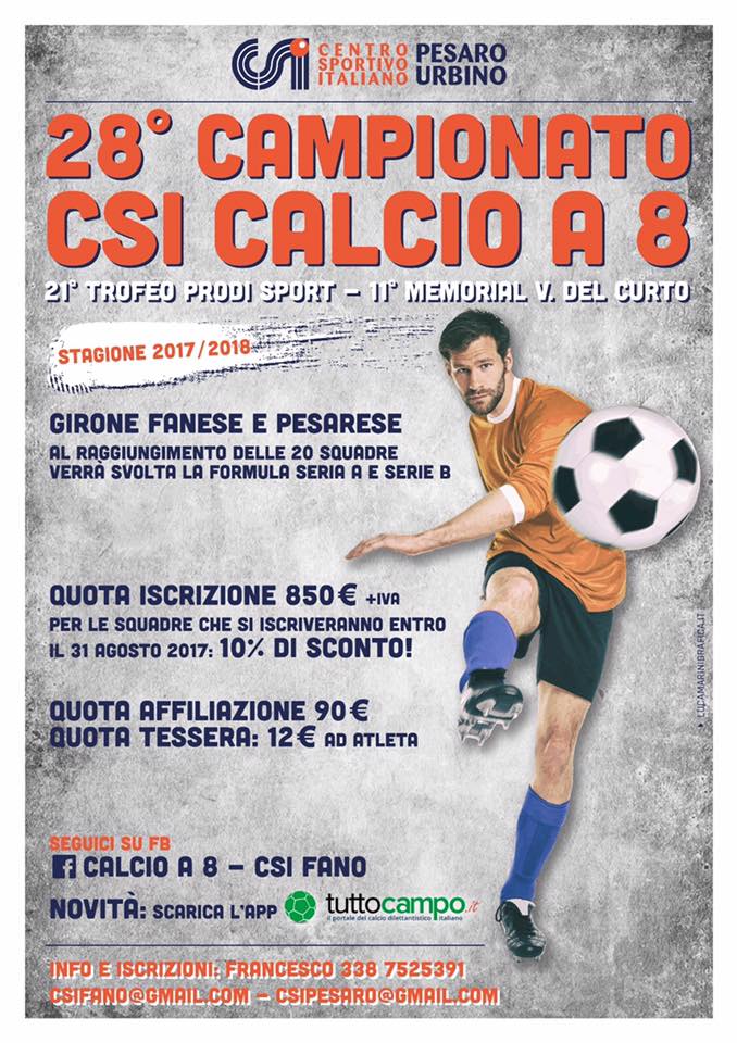 Inoltre, il campionato di calcio a 8 sarà formato da un girone fanese e uno pesarese. La quota di iscrizione è di € 850 a squadra.